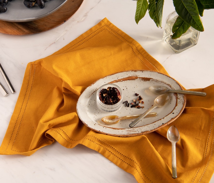 The double eyelet trim detail on our handmade canvas napkins is a clever way to introduce beautiful colors that define the season.