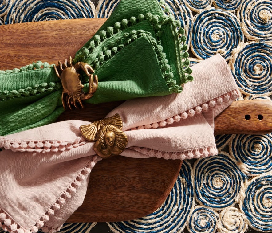 These napkins give every party that feminine touch! With the pom-pom border of this handmade cotton canvas collection. Make cocktail hours more enjoyable and luncheons more lovely.