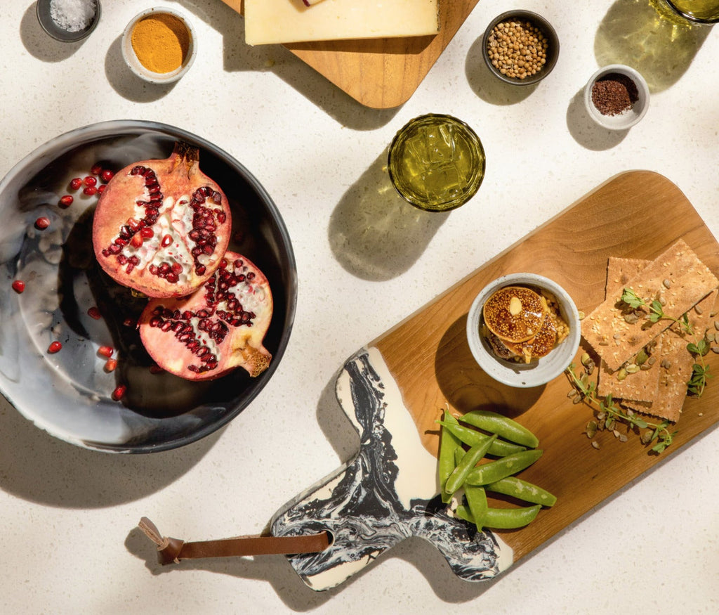 The magnetic marbleized surface on this classy collection of two-tone resin serving bowls brightens tabletops and adds character with handcrafted accents.